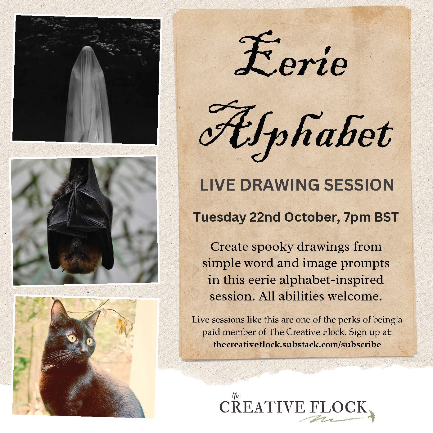 Eerie Alphabet drawing session: Tuesday 22nd October @ 7pm (BST)